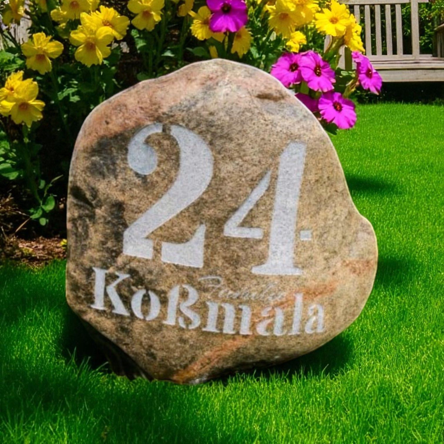 Ein solcher Stein zeigt auf den ersten Blick: Hier bist du richtig. Für Gäste, Paketboten oder Besucher ist sofort erkennbar, wer hier wohnt – ganz ohne langes Suchen an Klingeln oder Briefkästen.